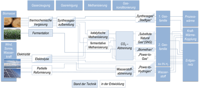 To cope with the insecurities of conventional natural gas supply, there’s a multitude of technical developments aiming towards the generation of natural gas substitutes from renewable resources: